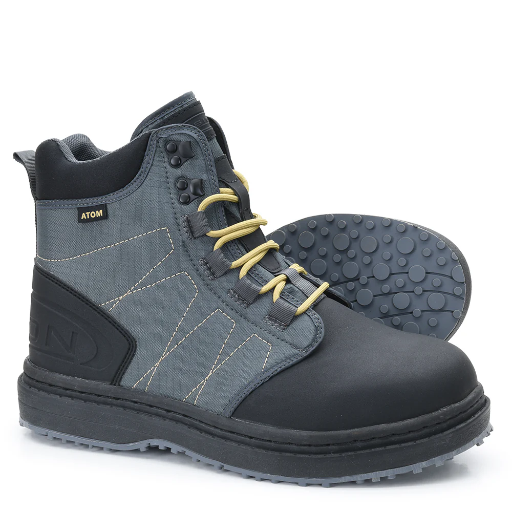 Atom is a traditional fabric shoe and very light shoe in our range. Therefore, it is ideal for those who like to travel and for those who don’t need the maximum support of their wading shoes. The front part’s PVC material is there to take the hardest beating and together with the strong and sheltering EVA midsole they make this this shoe long lasting in normal use.